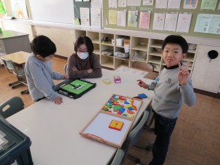 なかよし2では、学習が一段落した児童は、気分転換にオセロや形づくりをしていました。