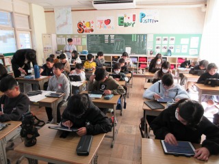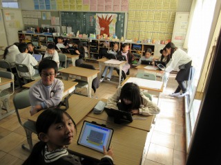 終わった人は、タブレット端末で学習を進めていました。