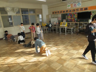 教室では、折り紙を折ったり、オリジナルゲームをしたりしていました。