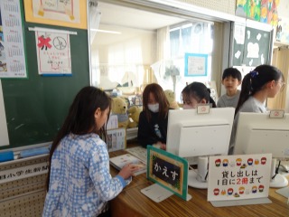 保健室や図書室での委員会活動、外遊び、教室内の様子です。