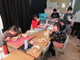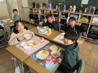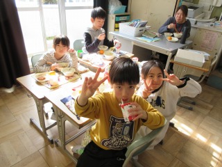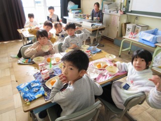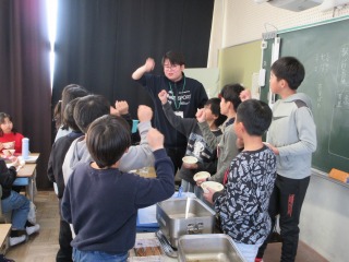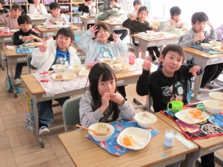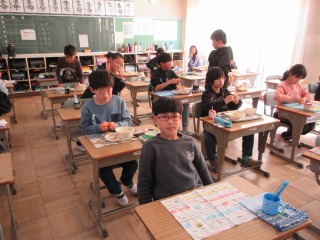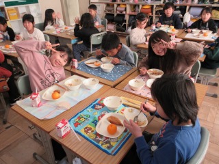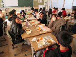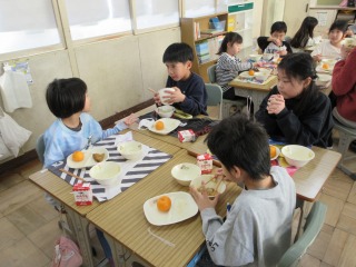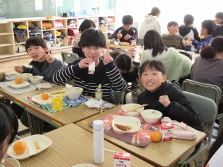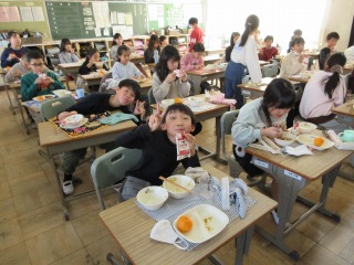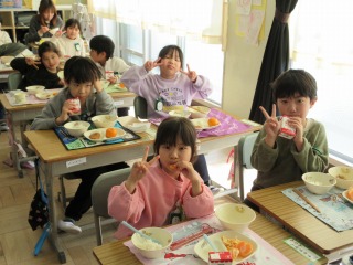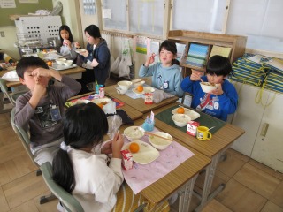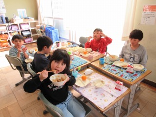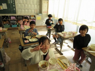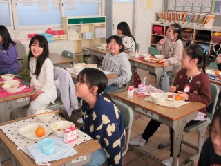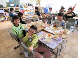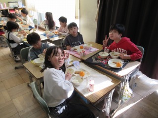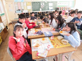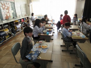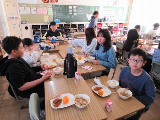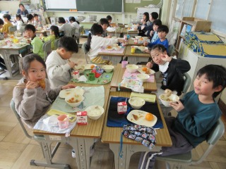 給食の時間は、時間帯や学級によって、様々な児童の様子がうかがえます。