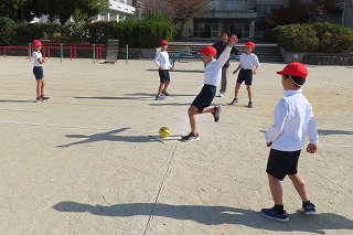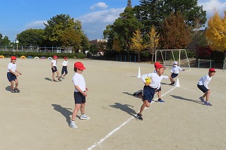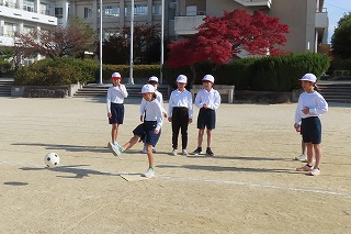 1-2は、運動場で体育でした。